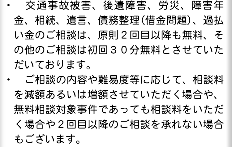 費用についてご不明な点がございましたら、丁寧にご説明させていただきますので、ご相談の際にお気軽にお尋ねください。
